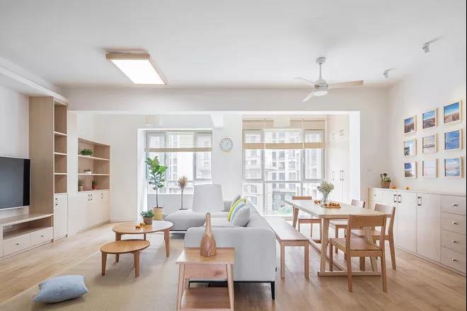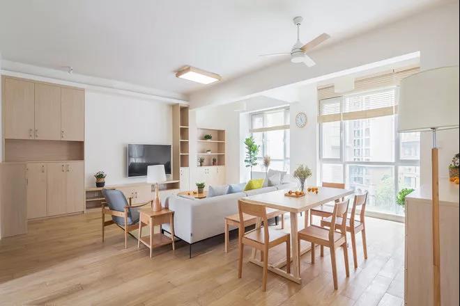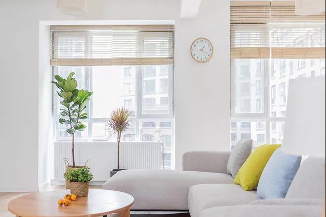 百葉窗簾的使用,大大增加了客廳的采光率。同時它比布藝的窗簾更加簡潔,午后用來隔絕火辣辣的陽光再好不過了。