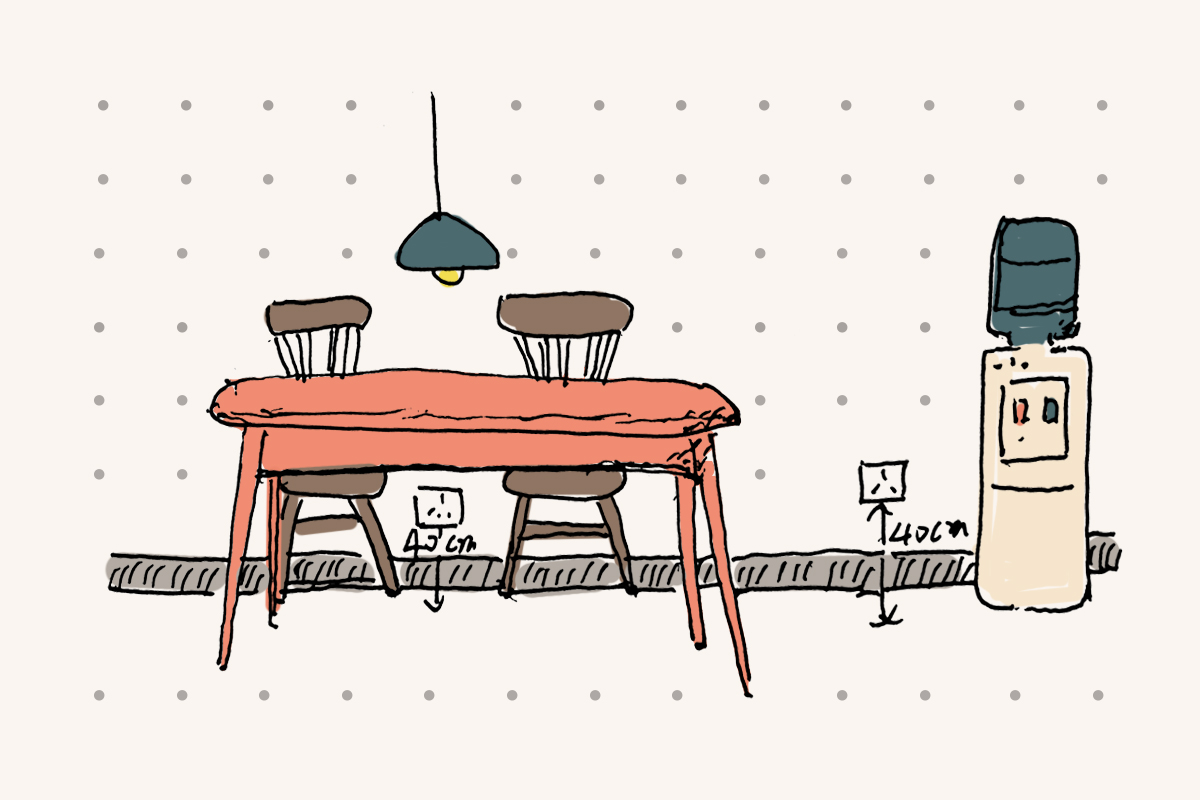 餐廳位置留出1個(gè)插座,高度離地面