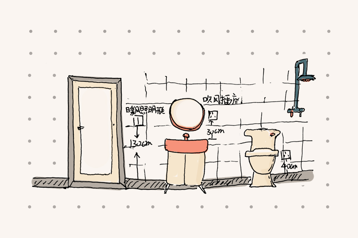 吹風(fēng)機(jī)需要留出1個(gè)插座的位置,高度是浴室柜臺(tái)面上方